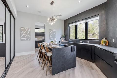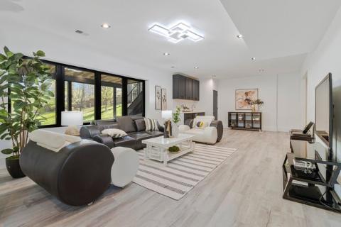 - Lower level (entry level) features in-law or au pair suite with own living area, kitchenette and laundry.