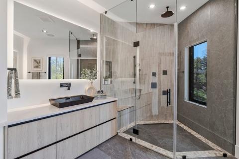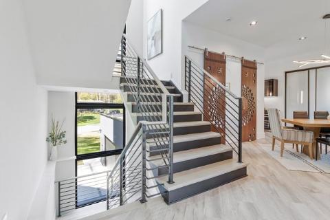 - Three finished levels in this modern style home with ease of access via the elevator