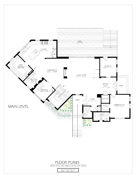 - Main level: Living room with floor to ceiling windows, fireplace. Access to the large deck through the living room.