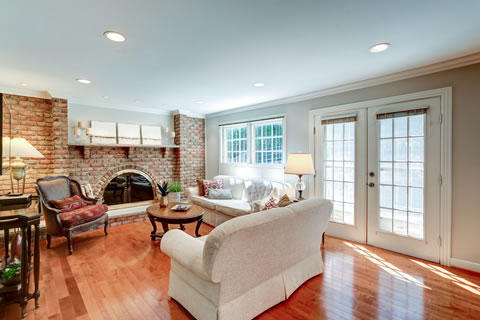 • Family room with fireplace and walk out French doors to stone patio